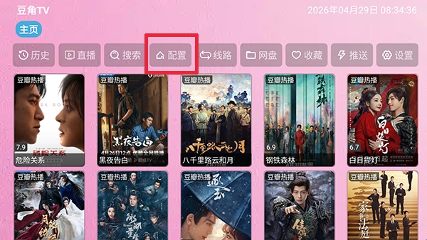 1、软件是有影视源接口配置的,打开软件先点击配置选项。