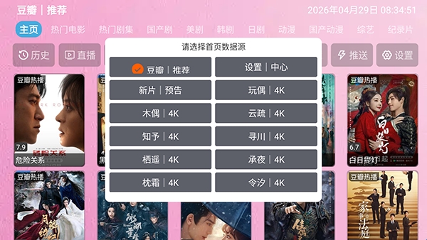 3、等待软件重新加载即可,点击主页选项可以切换首页影视源。