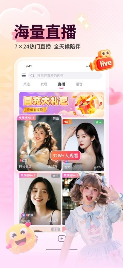 4、必备的聊天交友功能,美女直播交友更懂你