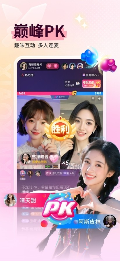 2、多人直播PK模式,热聊模式解锁。