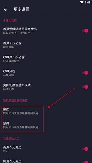 3、在更多的设置中,我们可以找到随机壁纸数据原始设置这里有两个选项:主屏幕和锁屏。您可以根据自己的需要进行选择