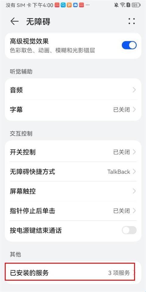 3、然后进入手机设置页面打开【无障碍】,找到【已安装的服务】