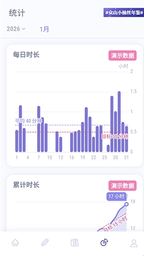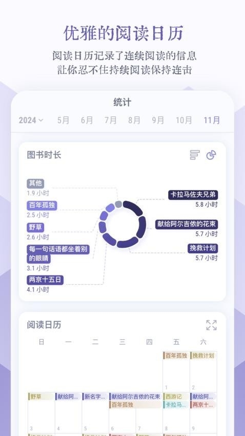 3、详细记录阅读时间,通过设计优雅的统计图激励花更多时间阅读。