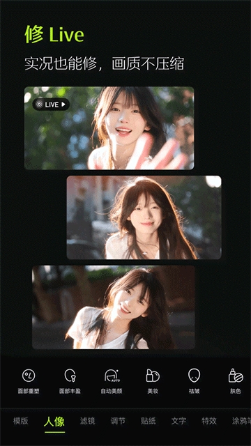 2、精准美型,真实自然:细节调整更精准,五官整体更自然。个性化微调,完美保留个人特征。
