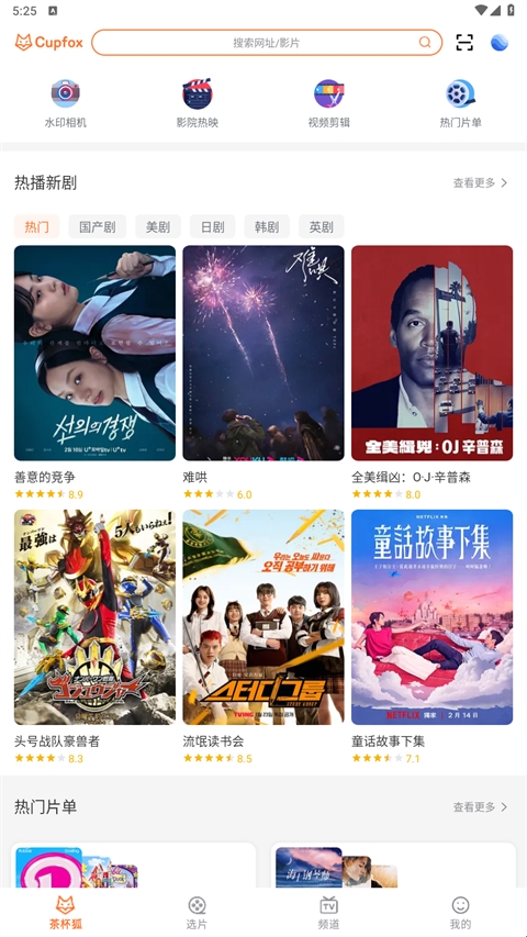 1、在本站下载安装并打开茶杯狐追剧网,进入软件首页;