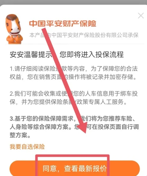 4、阅读页面提示,点击同意,查看最新报价选项。