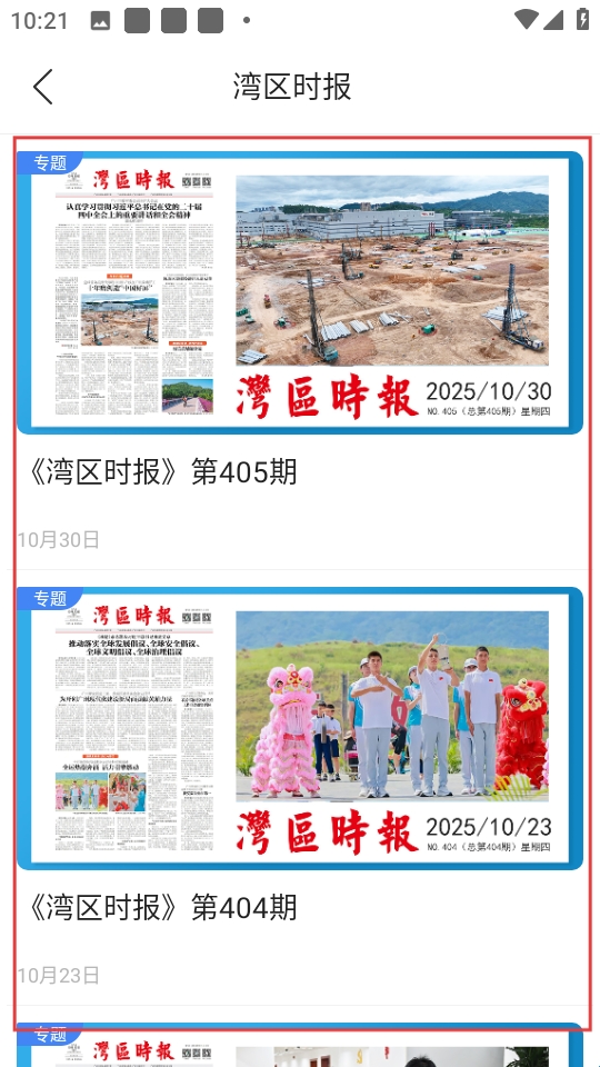 2、进入湾区时报板块后,可浏览不同期数的湾区时报,查看感兴趣的报道哦。