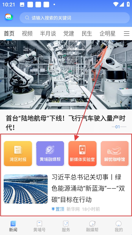 1、在软件首页,可点击湾区时报等板块,进入对应板块查看相关内容啦。