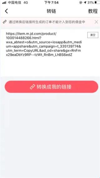 1、转链功能:京粉转链实现将京东商品转为适配各大社交平台的分享链接,一键分享,轻松下单。