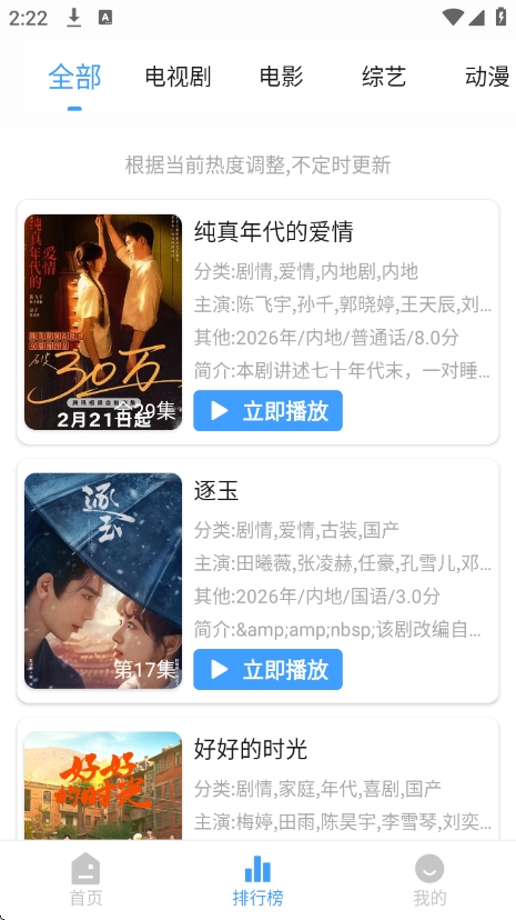 若惜追剧无广告版,一款十分好用的手机看剧软件。这里拥有海量高清影视资源,涵盖各种电影、电视剧、综艺、动漫、纪录片等类型的影视作品,所有影视都是免费的,不需要会员,点开就能看全集,是广大追剧人都在用的手机app。