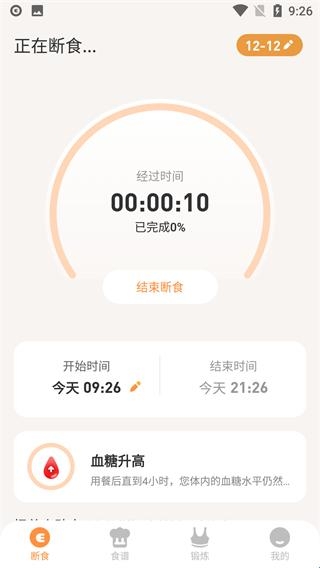 4、点击计划页面的各种模式便可开始断食,软件会进行记录。