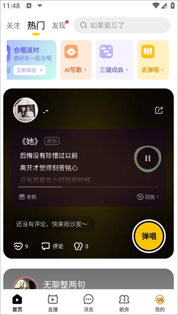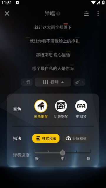 3、弹唱玩法:弹唱新玩法,不懂乐器也能自弹自唱。在弹唱的基础上,还可以使用合奏功能添加鼓点/和声/音效/旋律,为弹唱加点料。