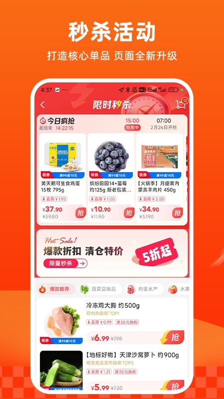 新鲜果蔬、肉蛋水产,米面粮油,零食酒饮,方便速食、家清日百...生活所需应有尽有,供应充足,随意挑选~