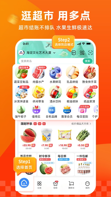 安心逛超市,用多点智能购:手机自由购结账,自助收银机结账、智能购物车结账,最快3秒结账不排队,不接触更安心!