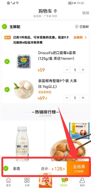 3、将所选商品加入购物车后,点击去结算即可完成订单支付操作。