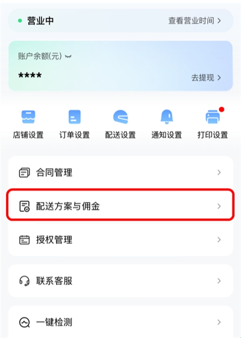 1、打开饿了么零售商家版,进入【我的】页面,点击【配送方案与佣金】。