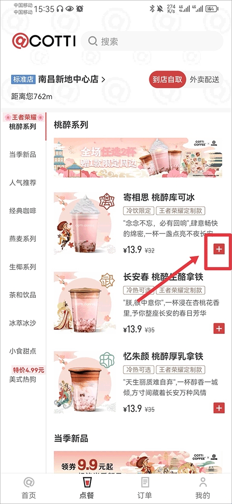 1、打开app,在点餐界面中选择喜欢的款式,并点击右边的红色加号