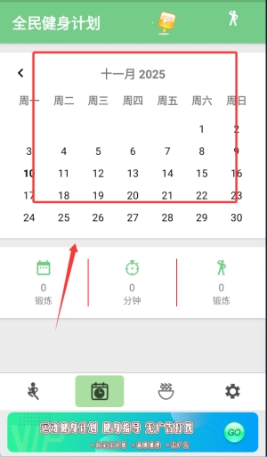 2、在健身日历中规划每日训练安排,设置具体锻炼项目与持续时间。系统会根据完成情况自动记录运动数据。