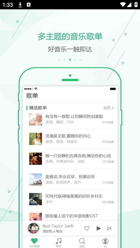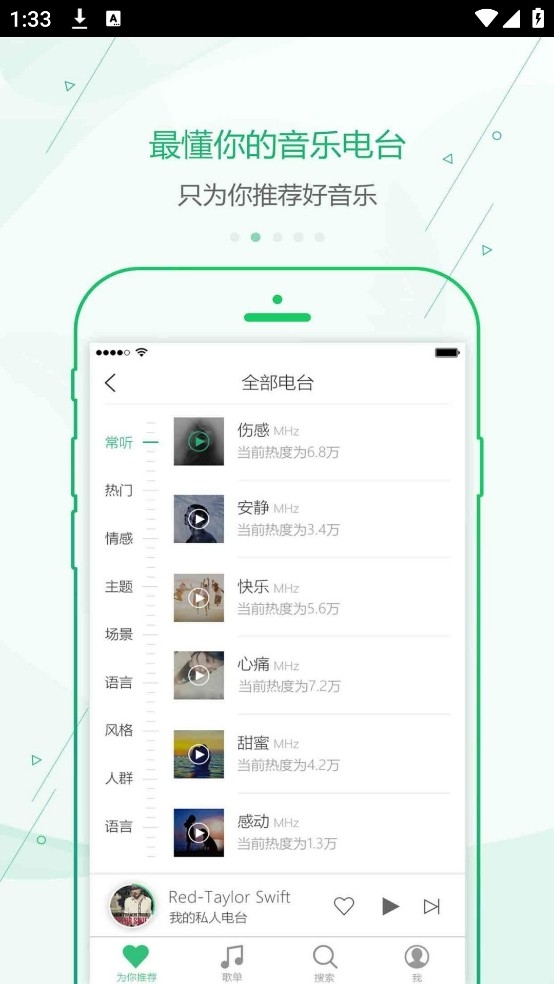 2、个性化推荐:根据用户的听歌习惯和喜好,智能推荐适合他们的音乐,让用户可以发现更多新的音乐