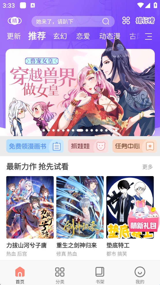 2、可以随时阅读在线漫画,有精选推荐,免费提供超人气资源。