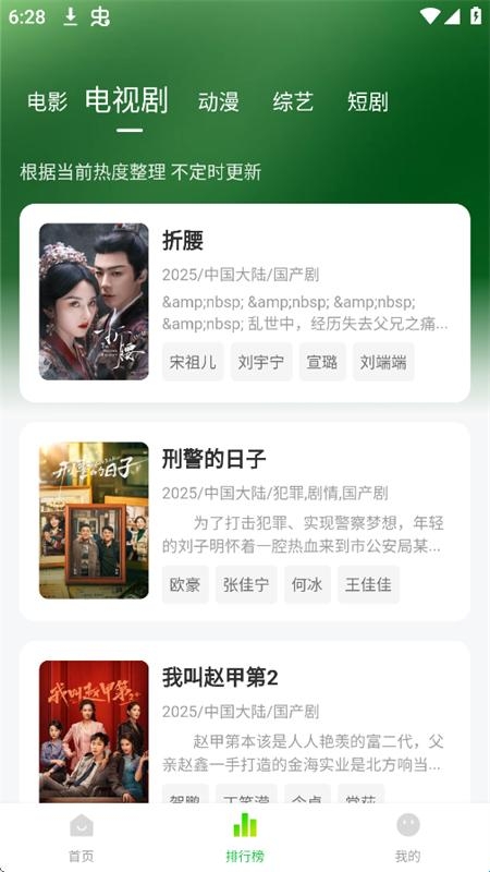 4、在排行榜页面可以查看实时的电影、电视剧、动漫等影视的热门排行