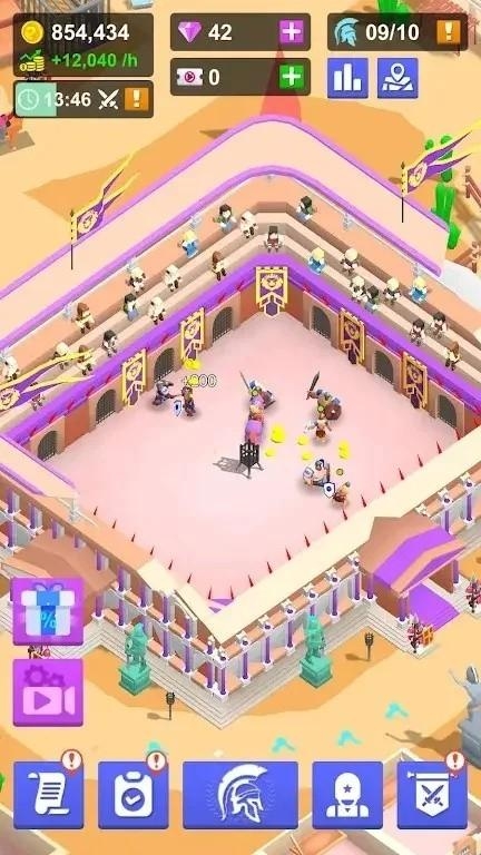 2、游戏以点击升级和招募角斗士为主要玩法,玩家可以收集硬币赢得现金,让游戏更富有挑战性和趣味性。