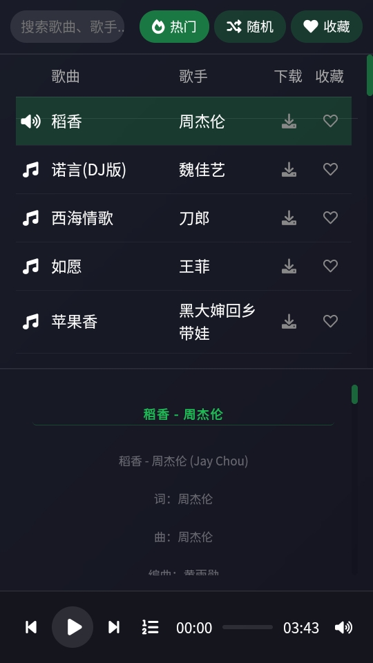 2、支持歌曲下载:用户可以将喜欢的歌曲下载到本地,支持最高无损音质