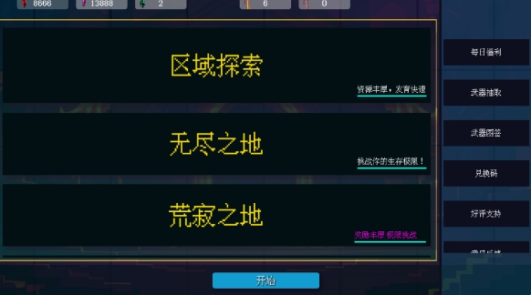 3、游戏有多重玩法模式,包括区域探索、无尽之地、荒寂之地,还有挑战BOSS,难度越高,奖励就越丰富。