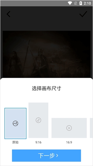根据视频发布场景点击对应比例,画面会自动居中适配。