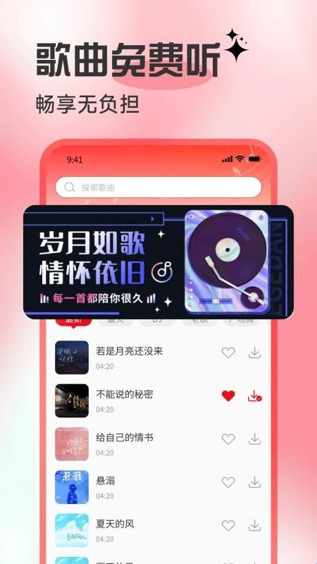 歌曲全民免费听软件,一款拥有超多免费歌曲的听歌软件。该软件涵盖了各种音乐:流行音乐、英语歌曲、小语种等。用户可以将自己喜欢的音乐上传到本地音乐,随时收听。并且,账号拥有同步功能,用户创造的歌单也可以在别的手机端显示。每日有推荐歌单为用户推荐新歌曲。享受高质量音乐。