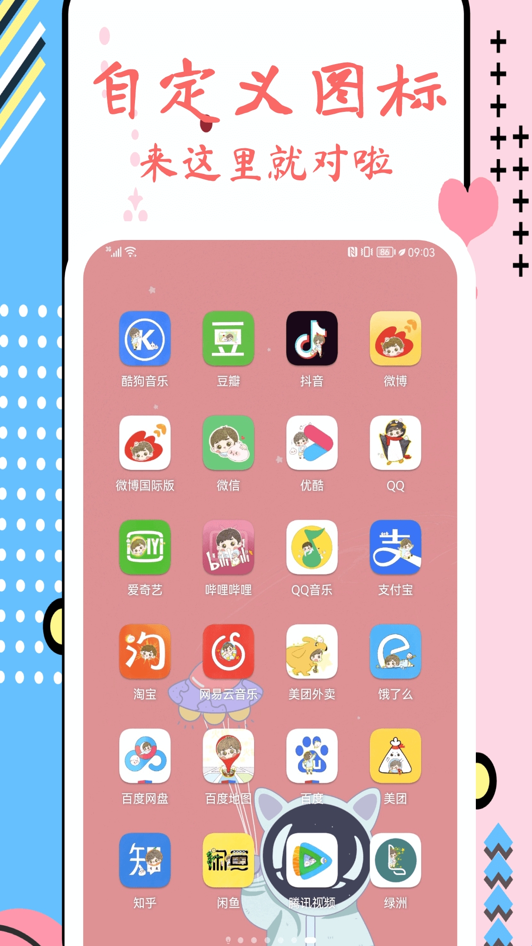 2、元气图标提供了数百款精心设计的图标与主题,轻松打造个性化手机桌面,快让你的桌面炫起来吧!