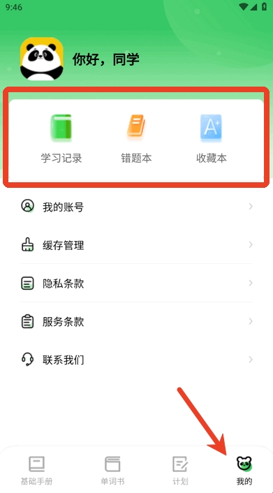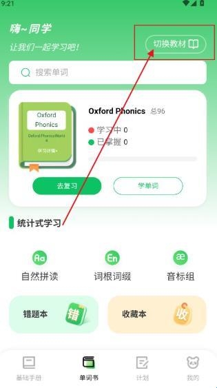 1、打开进入熊猫单词app,点击软件单词书界面中的切换教材按键