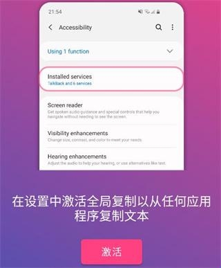 2、开启辅助服务激活全局复制模式,轻松选择各种应用中你想复制的文本