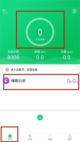 4、在首页可以查看今天步数以及进行睡眠记录。
