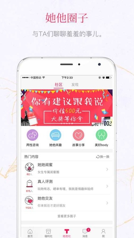 她他社也叫绿帽社,是一款专门为年轻男女用户们设计的线上聊天服务软件,千万网友在这里分享各种八卦和情感故事,你可以在这里尽情发帖表达自己的烦恼,我们的宗旨是鼓励大家不要因为爱情而感到迷茫,通过看尽人间百态,更加珍惜当下的感情,内置专业投稿平台,你可以随时在线投稿,为社区增添更多新鲜的八卦趣事,也可以在聊天板块和与其他网友互动交流,分享自己的生活趣事和感情经历,结识更多有趣的朋友。