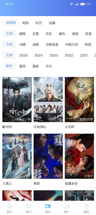 1、软件中电影,电视剧应有尽有,想看什么都能直接搜索,还在主页展示了热播的资源。