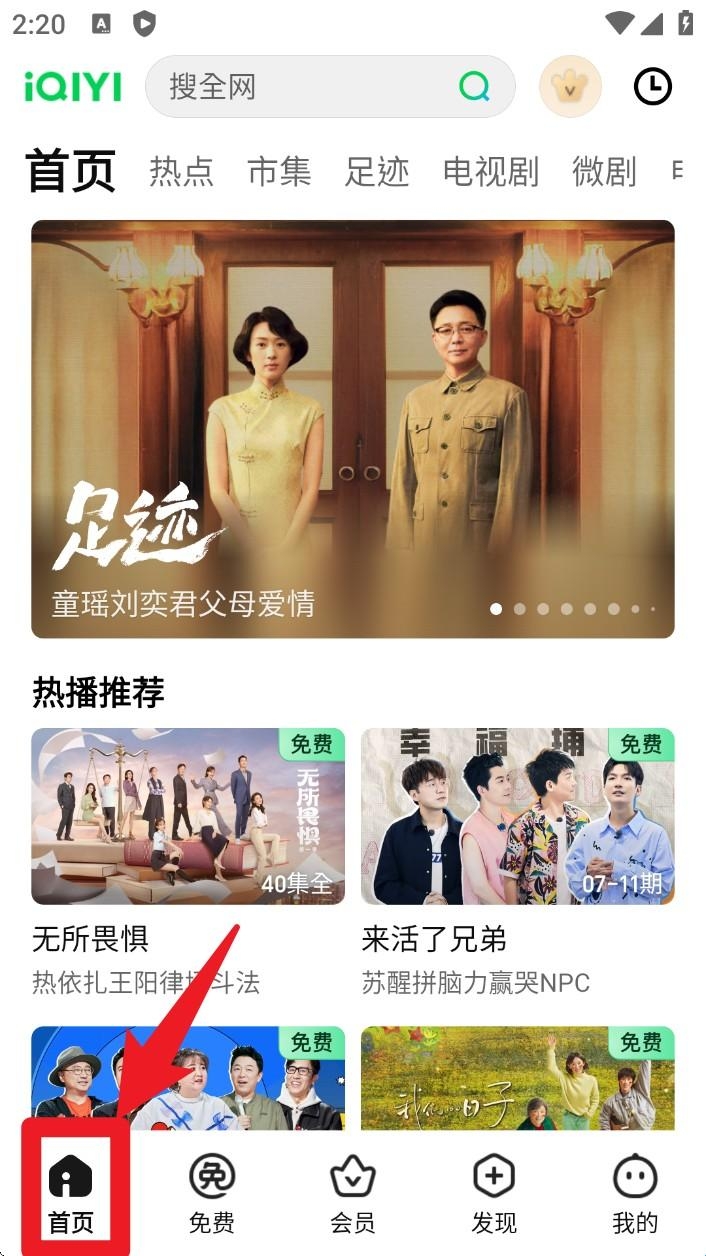 1.在首页底部点击「首页」按钮,进入推荐内容区,浏览热播剧集与分类频道入口。