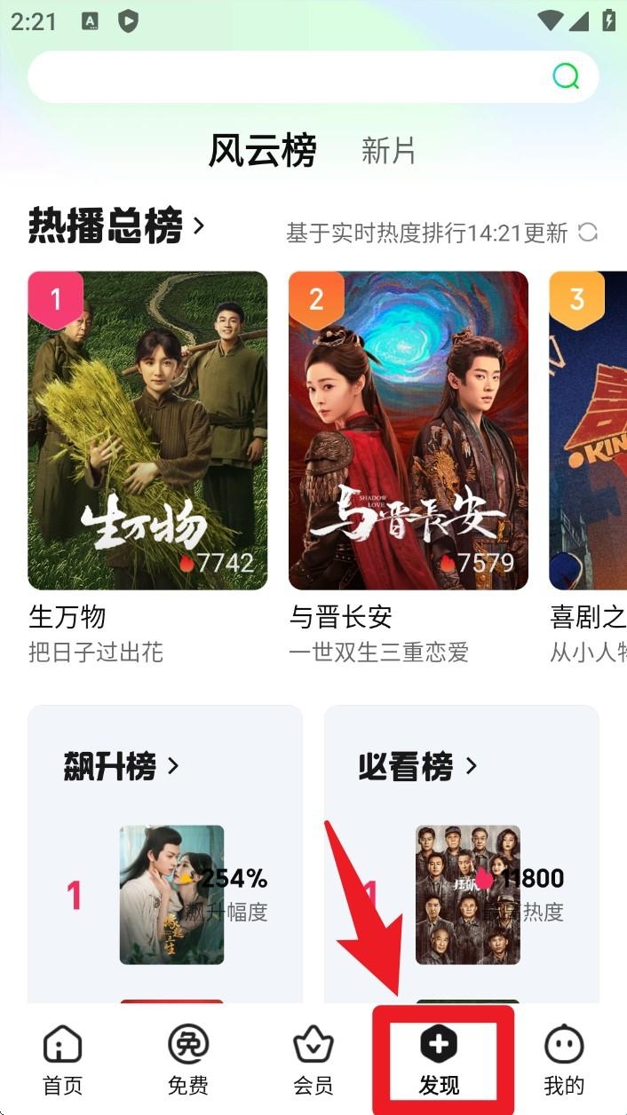 4. 在「发现」频道可查看热播排行榜、风云榜等内容,快速掌握当前人气作品排名。