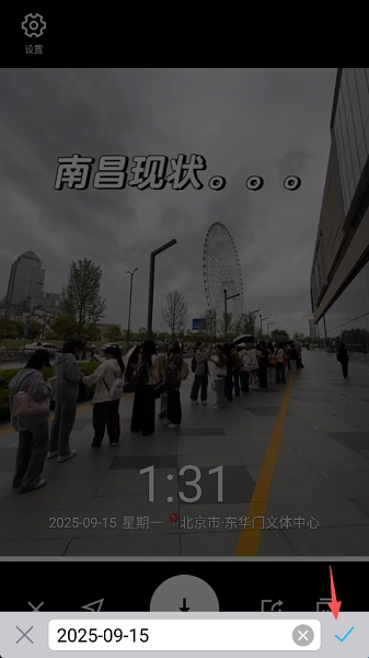 5、同理,点击“年月日”水印,同样可以进行修改,随后点击屏幕右下角的“钩”标识。