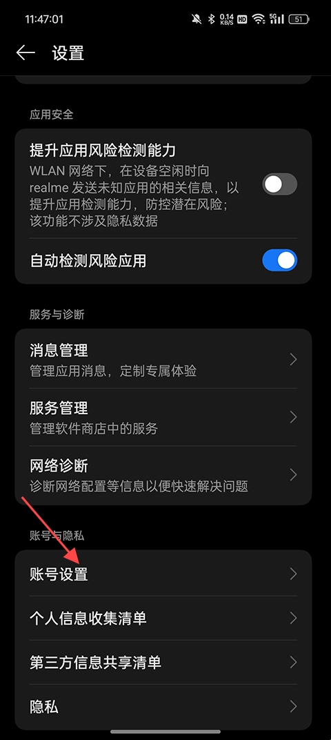 3、进来之后选择账号设置。