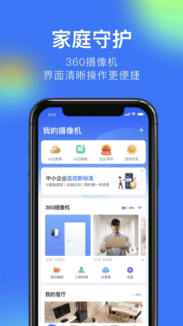 360摄像机智能看家app(原名:360 Camera)是一款功能十分全面的手机智能摄影app,它是由360官方专门打造的一款只能居家监控软件,有了它您随时都能在手机上看到你的家人父母,宠物小孩,让您出差在外也能感受到家的温暖,还在等什么,快来一起下载吧!