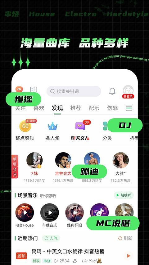 1、海量音乐:劲爆电音、DJ舞曲、Remix、蹦迪嗨曲、3D环绕、经典串烧应有尽有,你要的电音DJ都在这里。