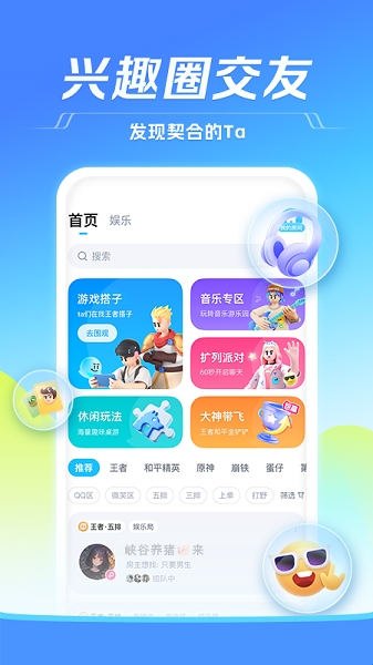 2、为你提供组队开黑线上K歌、玩伴扩列等时下流行的组局玩法~