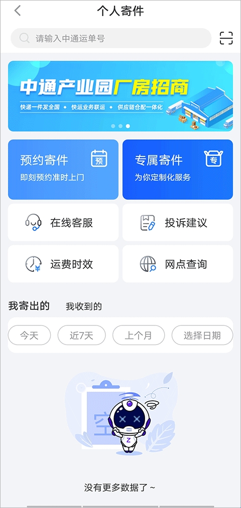 中通快递app是一款日常购物常用的快递查询app。其功能齐全,可以预约上门取件服务、取件查询、GPS精准定位,方便买家的使用;对于快递小哥来说,中通快递能谁会是接单,附近信息随时接收,帮助用户派件、接单更方便,而且能及时与客服通讯。软件服务功能很不错!