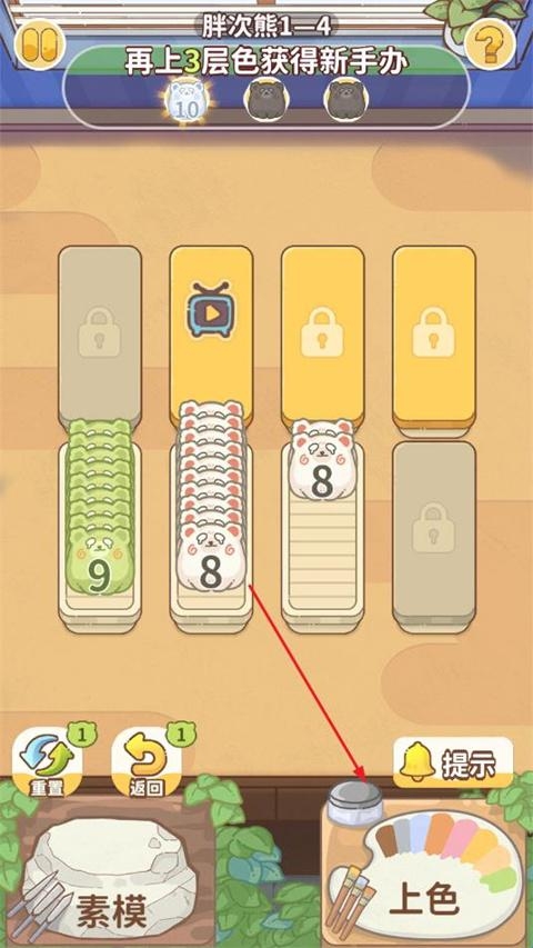 5、场上有已满的盒子,并且盒子内的手办一致,点击上色可以升级手办