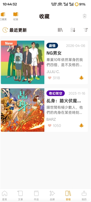 2、书架管理用户可以将自己喜欢的漫画添加到个人书架上,以便快速搜索和管理。