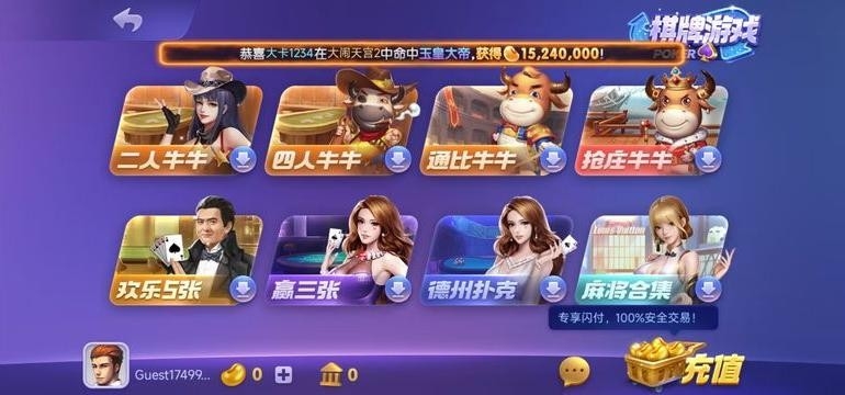 每种玩法都充满挑战与激情,特别设置新手专属区域,帮助新人玩家快速熟悉规则,在实战中稳步提升牌技,轻松完成从“小白”到“高手” 的进阶之路