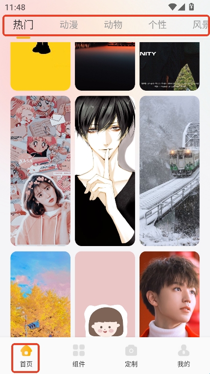 1、壁纸涵盖了海量、详细分类、流行、动漫、动物、个性、风景等。