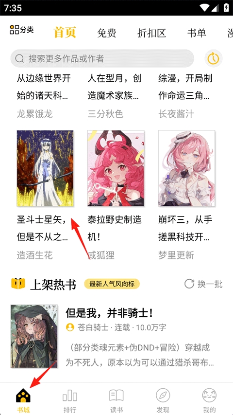 用户可在本栏目搜索自己感兴趣的作者和作品,或根据不同推荐和书单,查找自己想看的书籍。