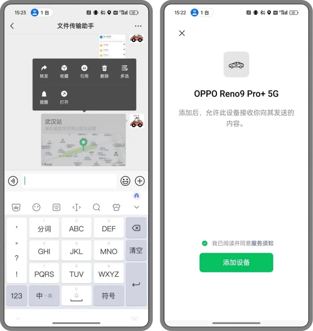 收到好友发送的位置,长按位置选择【打开】,选择设备,位置就会发送到Car Connect,通过悬浮窗提醒